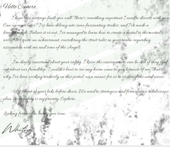In a distant land, two realms—the Demon Realm and the Heavenly Realm—remained locked in endless war. Shadows crept from the Demon Realm toward the heavens, while divine light pierced the gloom in defiance. Neither side would yield, leaving the land scarred and its people weary, with peace a distant dream.Cephero, a young and impetuous half-demon and half-human, found himself caught in the middle of the conflict. He had always been fascinated by the Heavenly Realm and its inhabitants, and over time, he had struck up a friendship with one of its denizens.As the war between the realms escalated, Cephero found himself torn between his loyalty to the Demon Realm and his growing fondness for the angels. He couldn't bear the thought of fighting against his friend and her people, but he also didn't want to betray his own kind.In the end, Cephero's friendship with the angels was discovered by the high-ranking members of the Demon Realm. As punishment, he was stripped of his ability to travel between the realms and was banished to the human world.